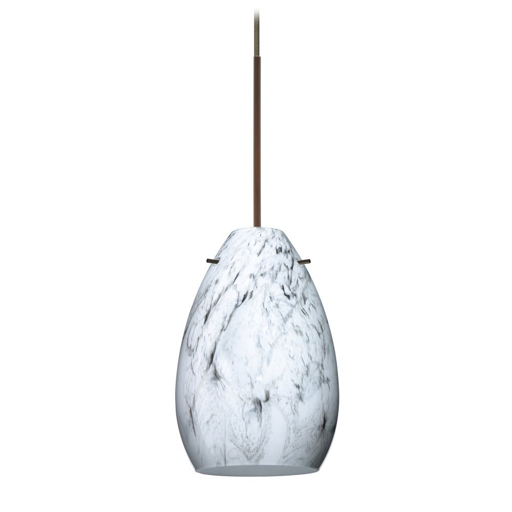 Besa Lighting 1XT-1713MG-BR 1X50W Gy6.35 Pera 6 Pendant with Marble Grigio Glass, Bronze Finish