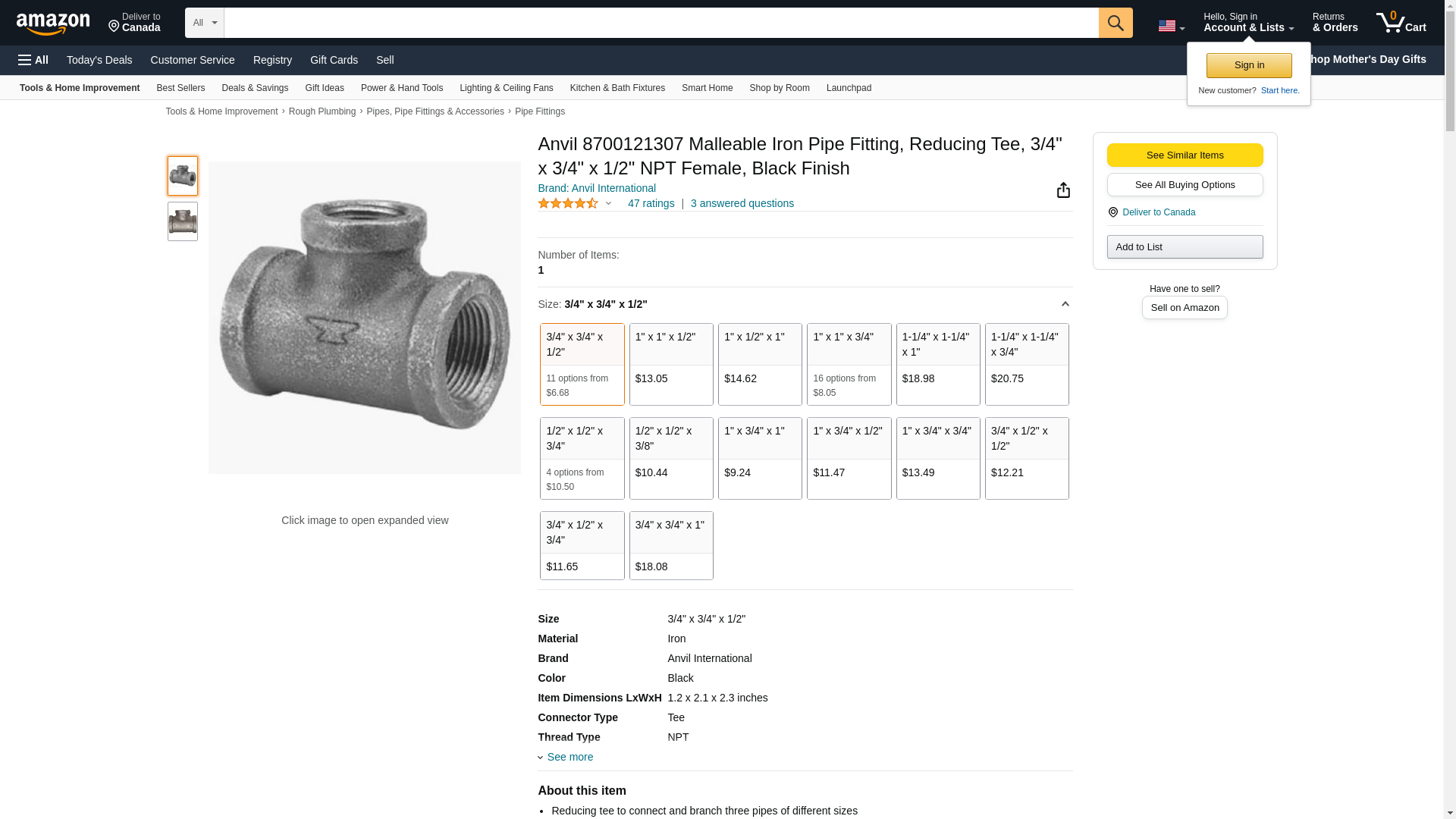 Sold as 9 UNITS at $3.57 per unit. (1 unit = each.) Black. 3/4 x 3/4 x 1/2" . Manufacturer number: 8700121307. SKU #: 41545. Country of origin: (TBA). Distributed by Anvil International.