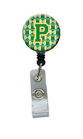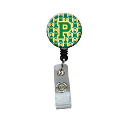 Letter P Football Green and Gold Retractable Badge Reel