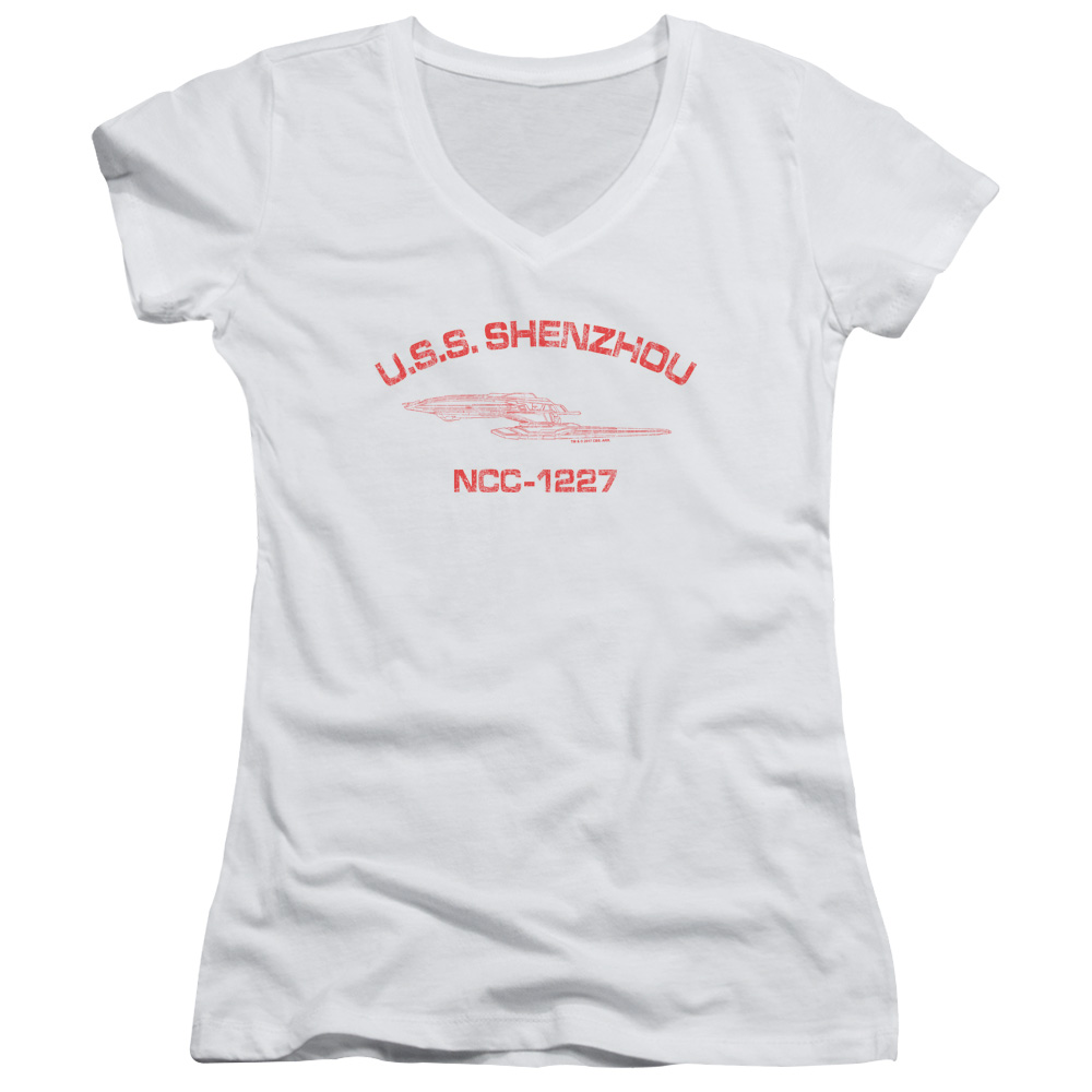 Trevco CBS2320-JV-5 Star Trek & Shenzhou Athletic Junior V-Neck Cotton T-Shirt, White - 2X