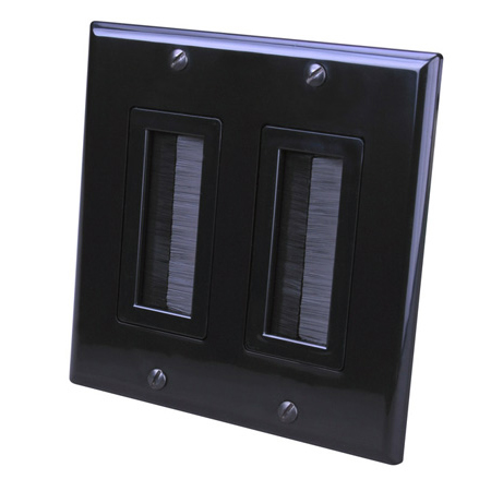 Wall Plate Bulk Cable Brush 2 Gang Black