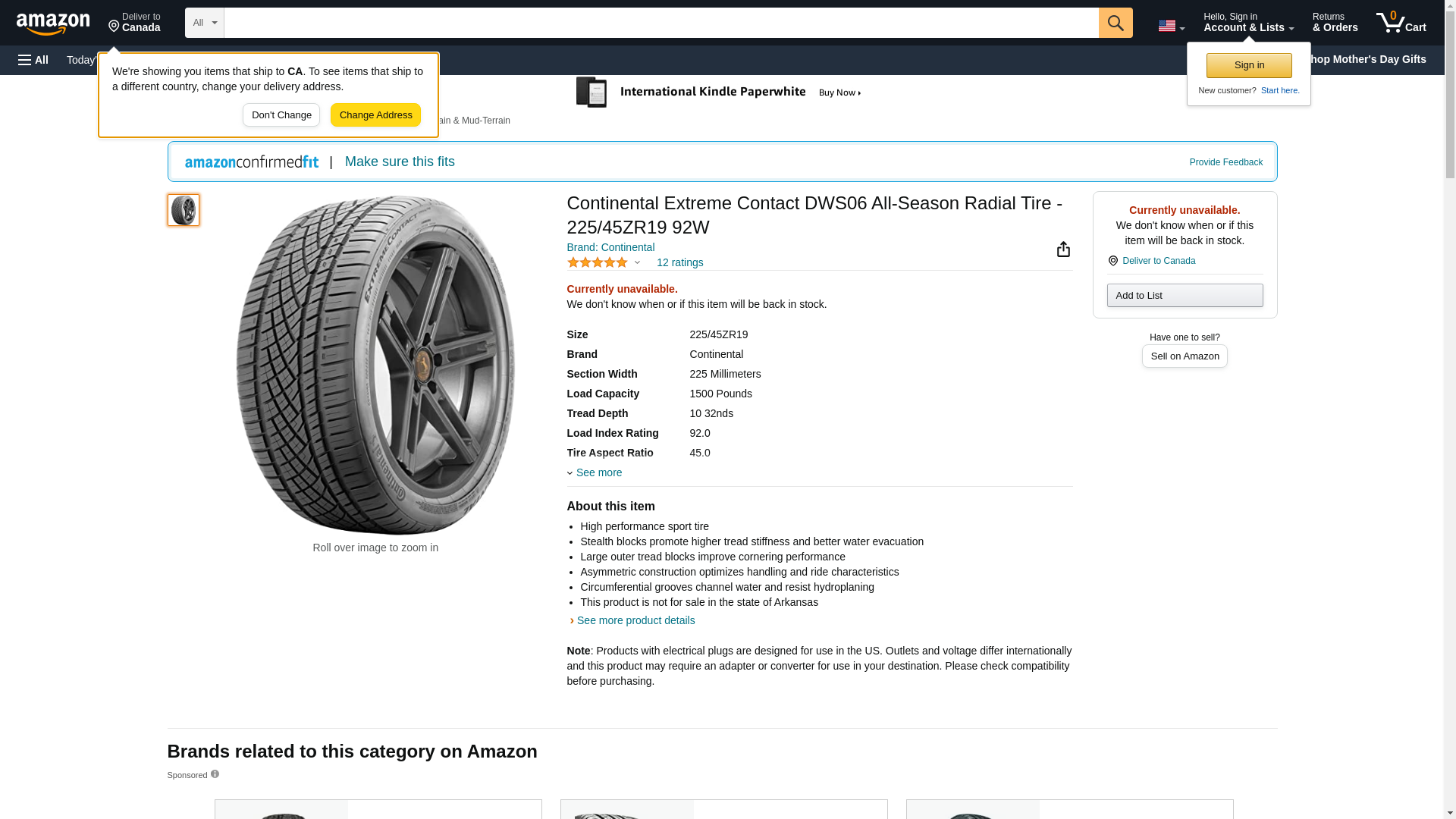 Continental Extreme Contact DWS06 All-Season Radial Tire - 225/45ZR19 92W