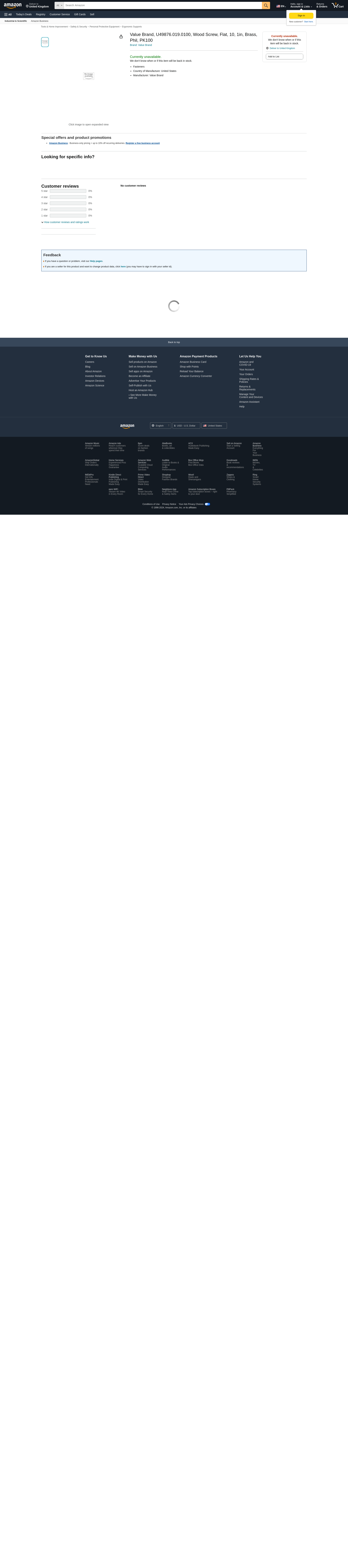 Value Brand, U49876.019.0100, Wood Screw, Flat, 10, 1in, Brass, Phil, PK100