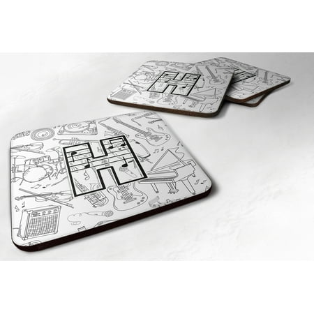 Caroline's Treasures CJ2007-HFC Letter H Musical Note Letters Foam Coaster Set of 4 Set of 4 Cup Coasters for Indoor Outdoor, Tabletop Protection, Anti Slip, Mouse pad Material