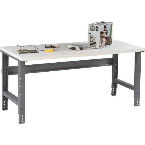 Tennsco WBA-1-3660P-MGY Adjustable Leg Workbench, Plastic Top, 60" Width, 36" Length, 27 4"-35 2" Height, 800 lbs. Load Capacity, Medium Grey