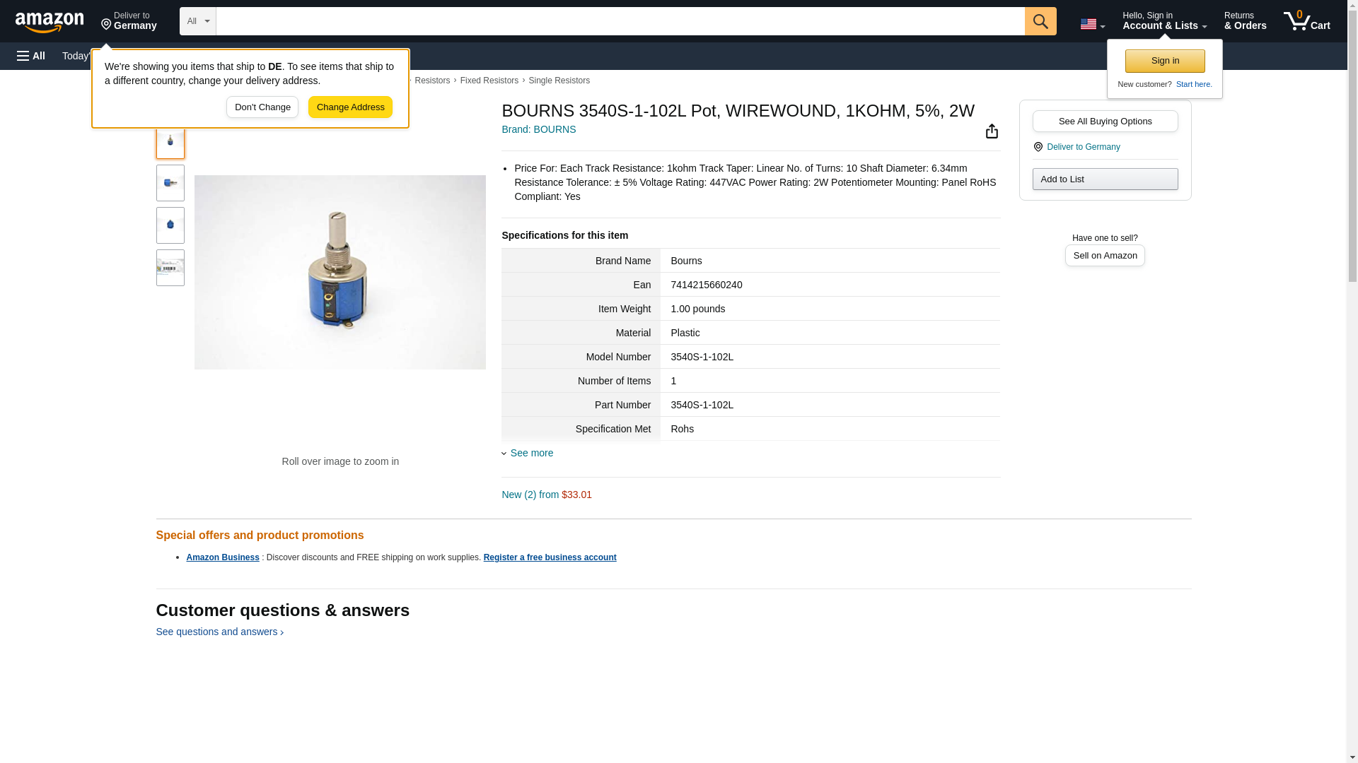 | 3540S-1-102L | 1 | 92 | 1 | 1 @ $30.65, 3 @ $28.18, 10 @ $26.56, 20 @ $26.02, 50 @ $25.49 | |