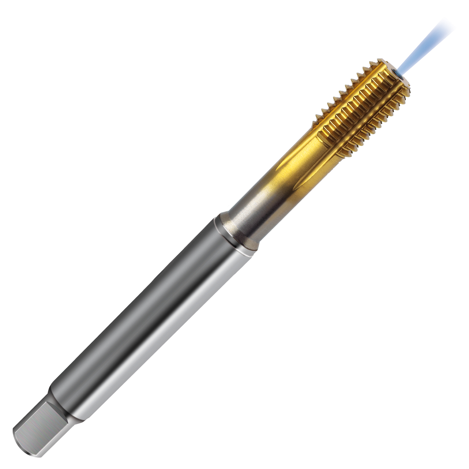 M12 x 1.25 Form Tap, Bottoming DIN 371 Standard, HSS-E-PM (PM Cobalt), D7/D8, TiN Coated, Oil Grooves, Coolant Fed Type: Form Tap,Number of Flutes: 6,Hole Type :Blind Hole 100mm Overall Length, 9mm Shank Diameter, With Coolant Through, Chamfer Form E: 1.5 to 2 Lead Threads Series No. 1731, Order Code 12.0060, Guhring Part #9017310120060