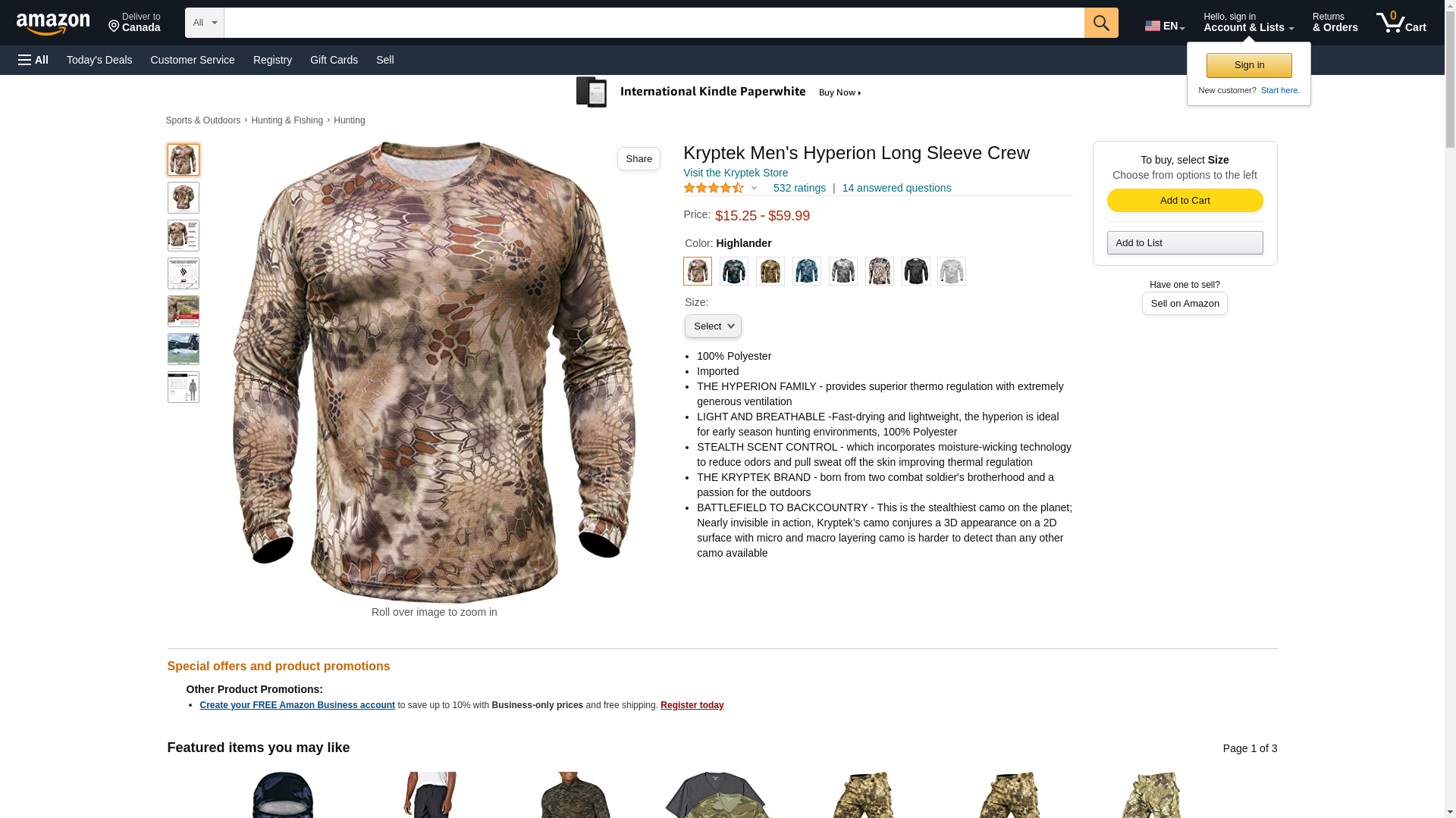 Kryptek Mens Hyperion Long Sleeve Crew, Highlander, Large 15HYPLSCH5