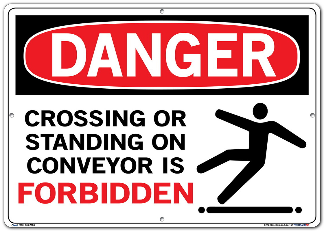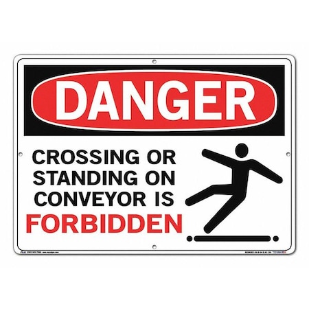 Vestil SI-D-34-E-AC-130 CROSSING OR STANDING ON CONVEYOR IS FORBIDDEN Danger Sign, Aluminum Composite, 0.130" Overall Size, 20.5" W x 14.5" H