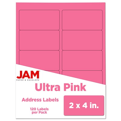 JAM Paper Laser/Inkjet Shipping Address Label, 2" x 4", Ultra Pink, 10 Labels/Sheet, 12 Sheets/Pack | Quill.com