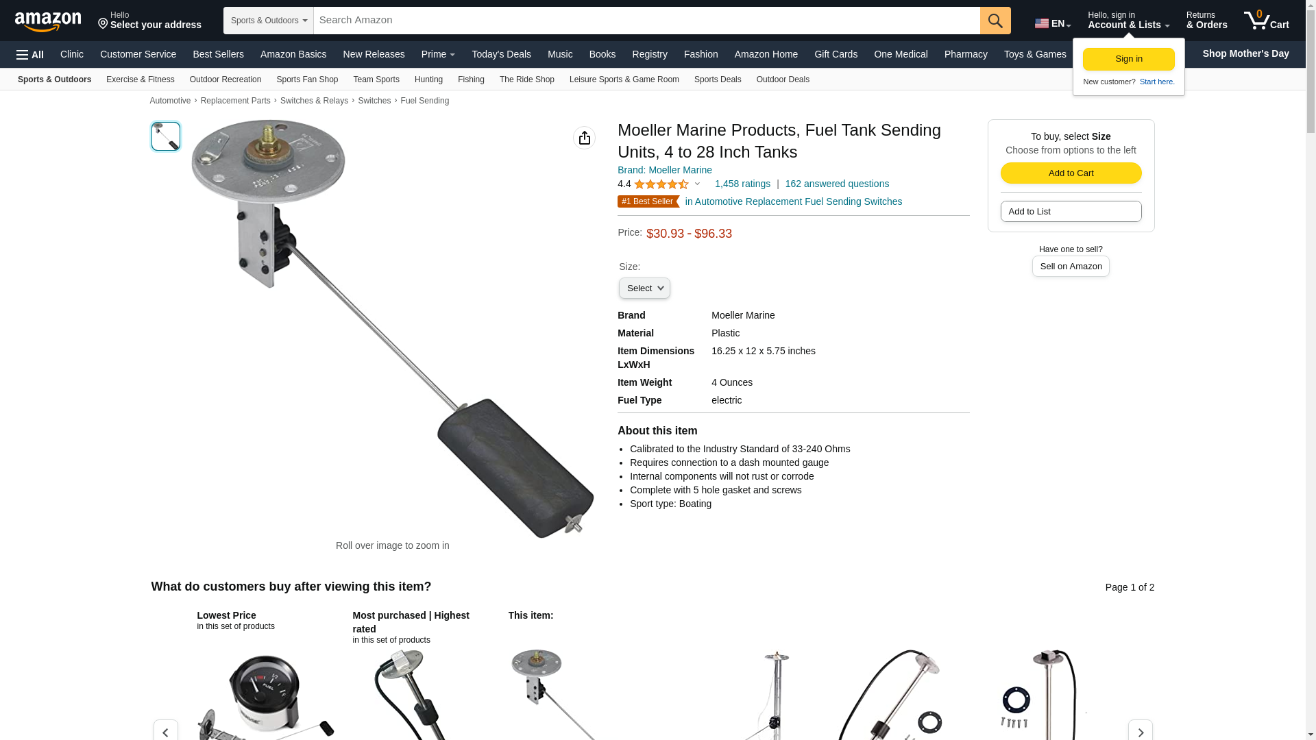 Moeller Swingarm Electric Sending Unit Complete Kit With Dash Mounted Gauge For 4" to 28" Tank Depth - 035726-10 - Boaters Plus