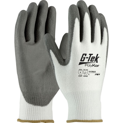 G-Tek 16-D622/XL Gloves, Seamless Knit PolyKor, Polyurethane Coated Flat Grip, 13 Gauge, White, X-Large | JensenTools