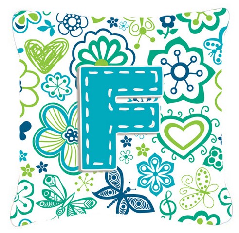 Caroline's Treasures CJ2006-FPW1818 Letter F Flowers & Butterflies Teal Blue Pillow, 18" x 18", Multicolor
