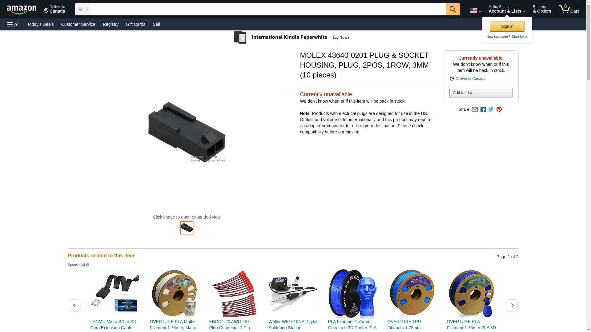 | 43640-0201 | 1 | 52699 | 1 | 1 @ $0.16, 1000 @ $0.14, 5000 @ $0.12, 10000 @ $0.11, 25000 @ $0.10 |