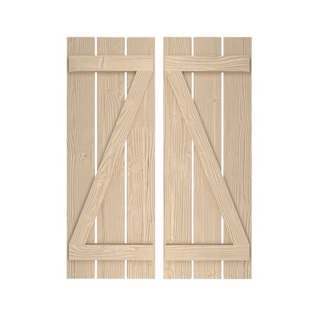 Ekena Millwork SHUBSZ Faux Wood Shutters (Per Pair) Rustic Spaced n-Batten w/Z-Board, 23 1/2"W x 50"H, Sandblasted