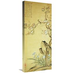 Global Gallery GCS-267595-30-142 30 in. A Bird Standing on a Peach Blossom Tree Art Print - Wang Wu