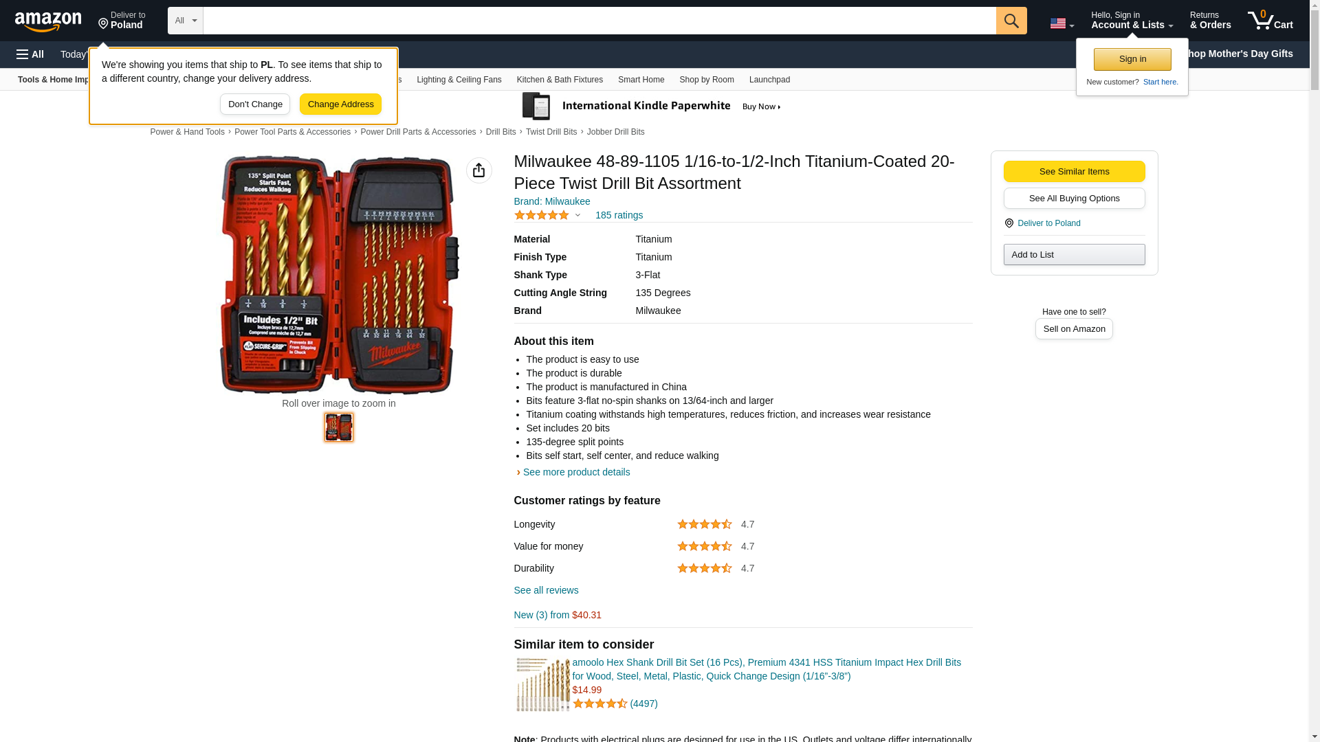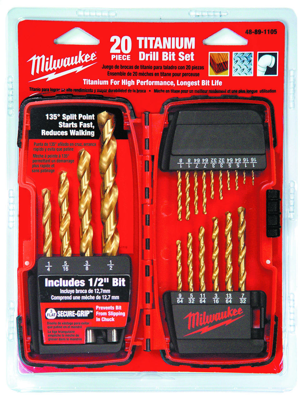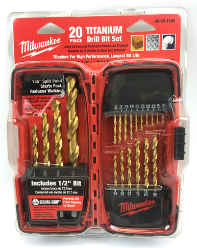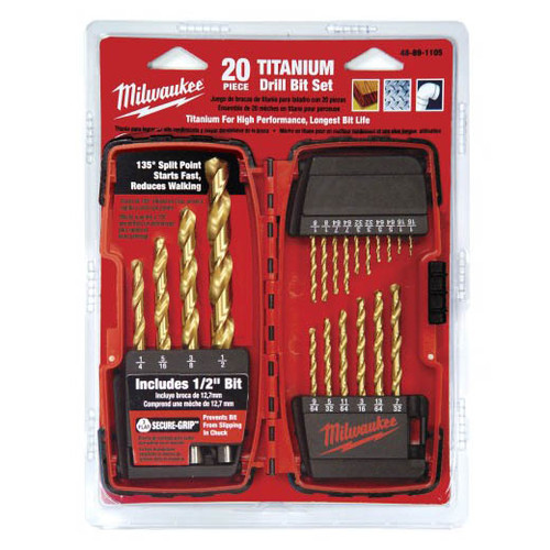 Milwaukee 48-89-1105 1/16-to-1/2-Inch Titanium-Coated 20-Piece Twist Drill Bit Assortment