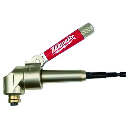 Milwaukee's right angle attachment allows contractors to drive screws and drill holes in tight, difficult work areas. This attachment is ideal for cordless drills and uses standard 1/4 in hex accessories. It has a durable all-metal housing and steel gears with ball bearing construction which allows this adapter to handle up to 235 in-lb of torque. The compact design measures only 2 in wide allowing it to fit in tight spaces where work is difficult to perform. The convenient quick change chuck accepts standard 1/4 in hex drive accessories. Pack of 1