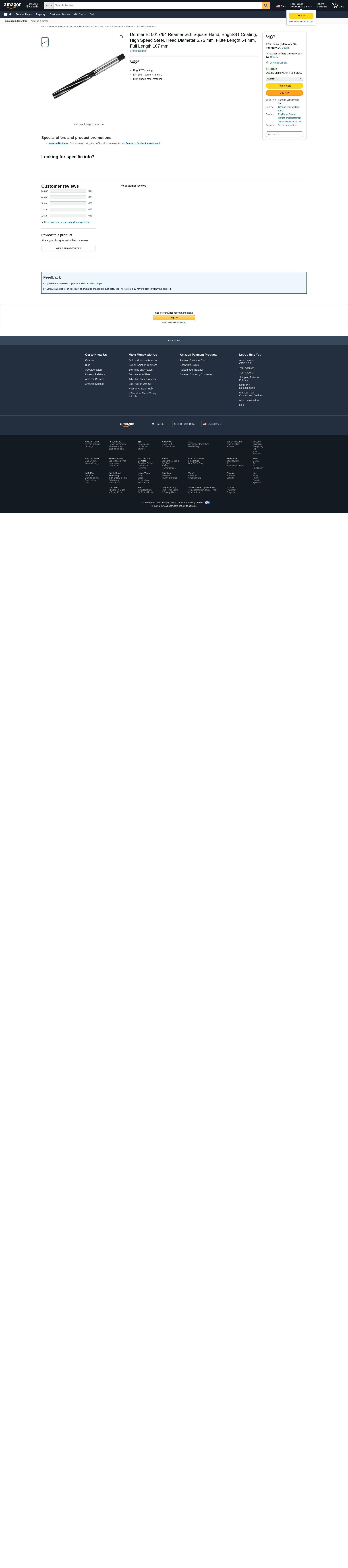 Dormer B10017/64 0179727 Hand Reamer 6FL 17/64 inch - MROSupply.com