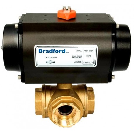 - Pneumatically Actuated 3-Way Brass Ball Valve