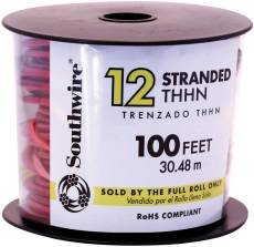 Southwire 136825 Thhn Strand 12Gauge Red,100 Ft. 22966652