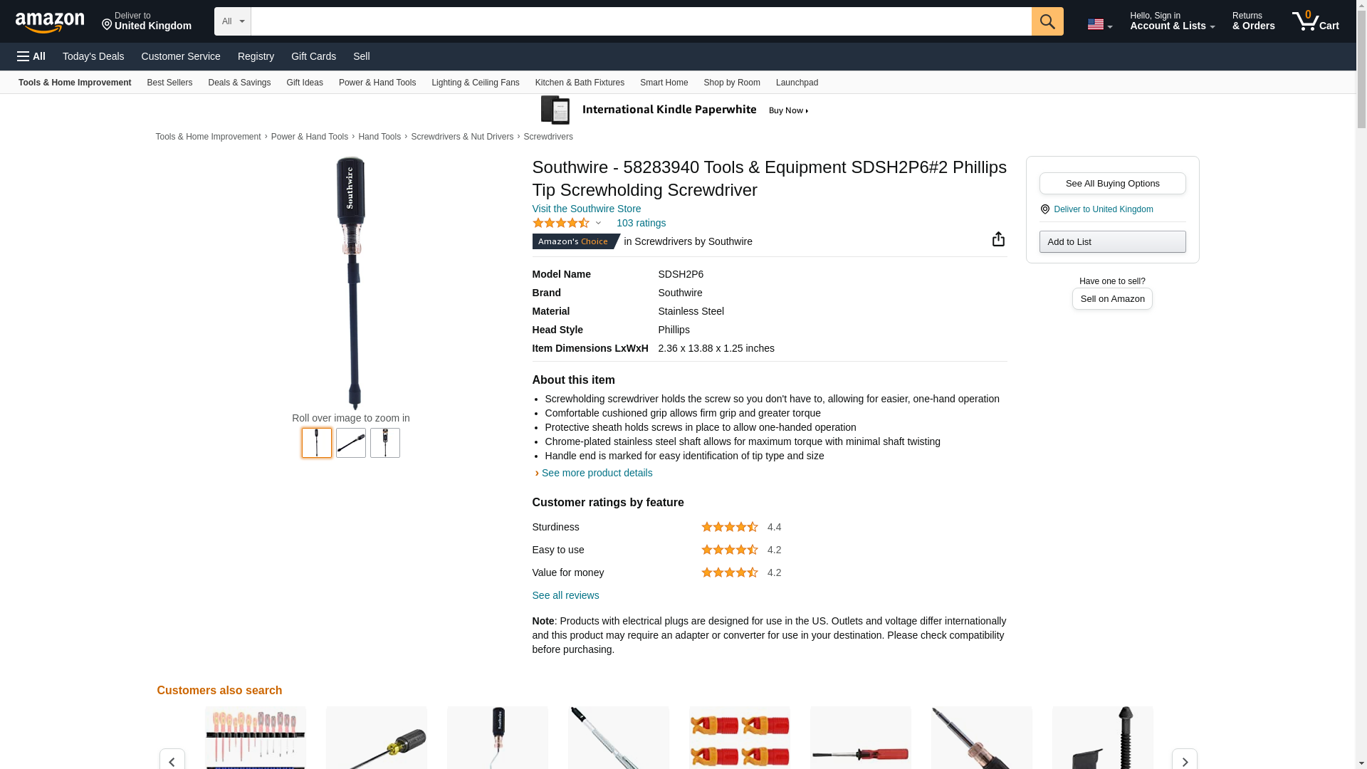 Southwire - 58283940 Tools & Equipment SDSH2P6#2 Phillips Tip Screwholding Screwdriver