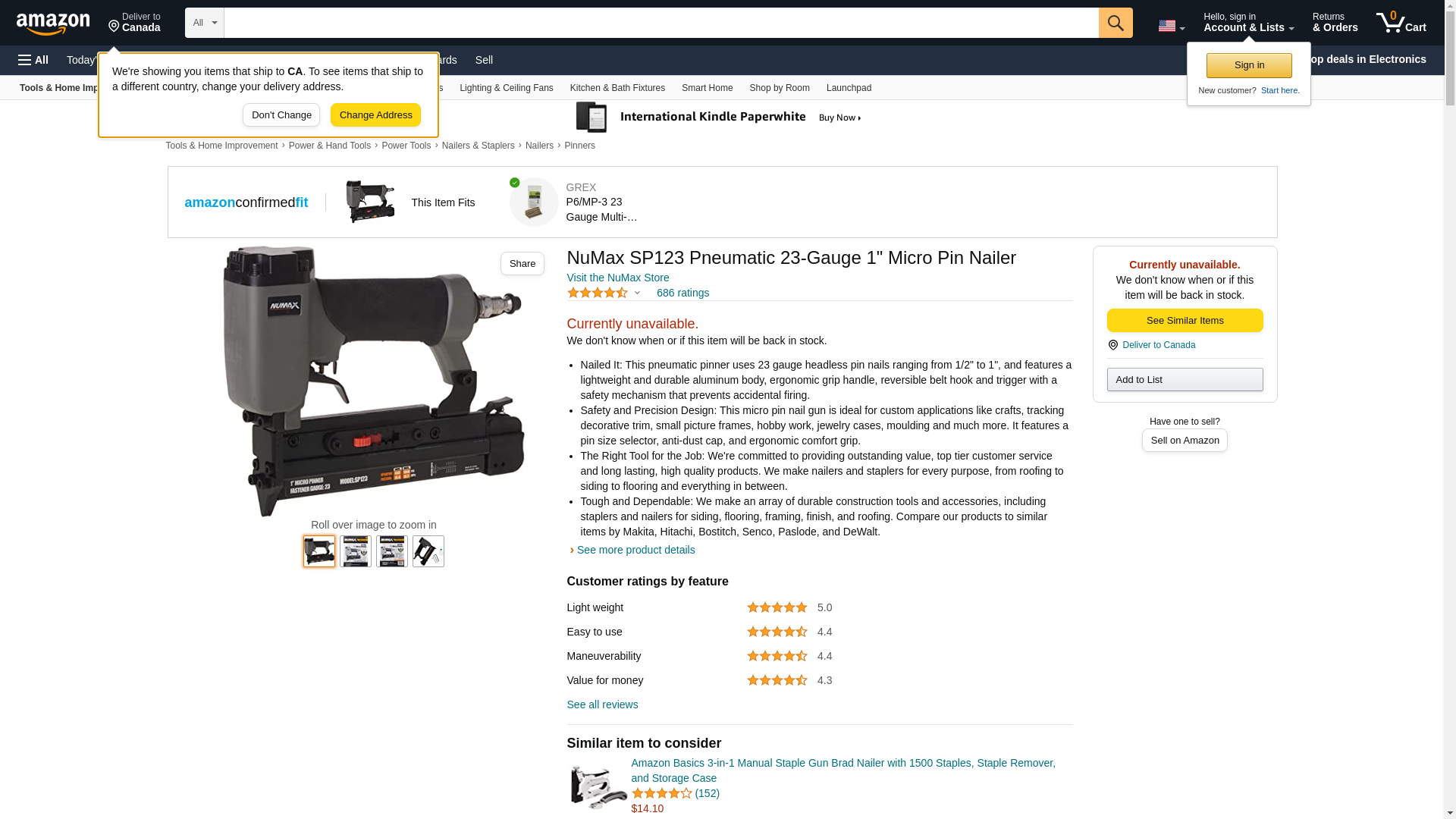 NuMax SP123 Pneumatic 23-Gauge 1" Micro Pin Nailer