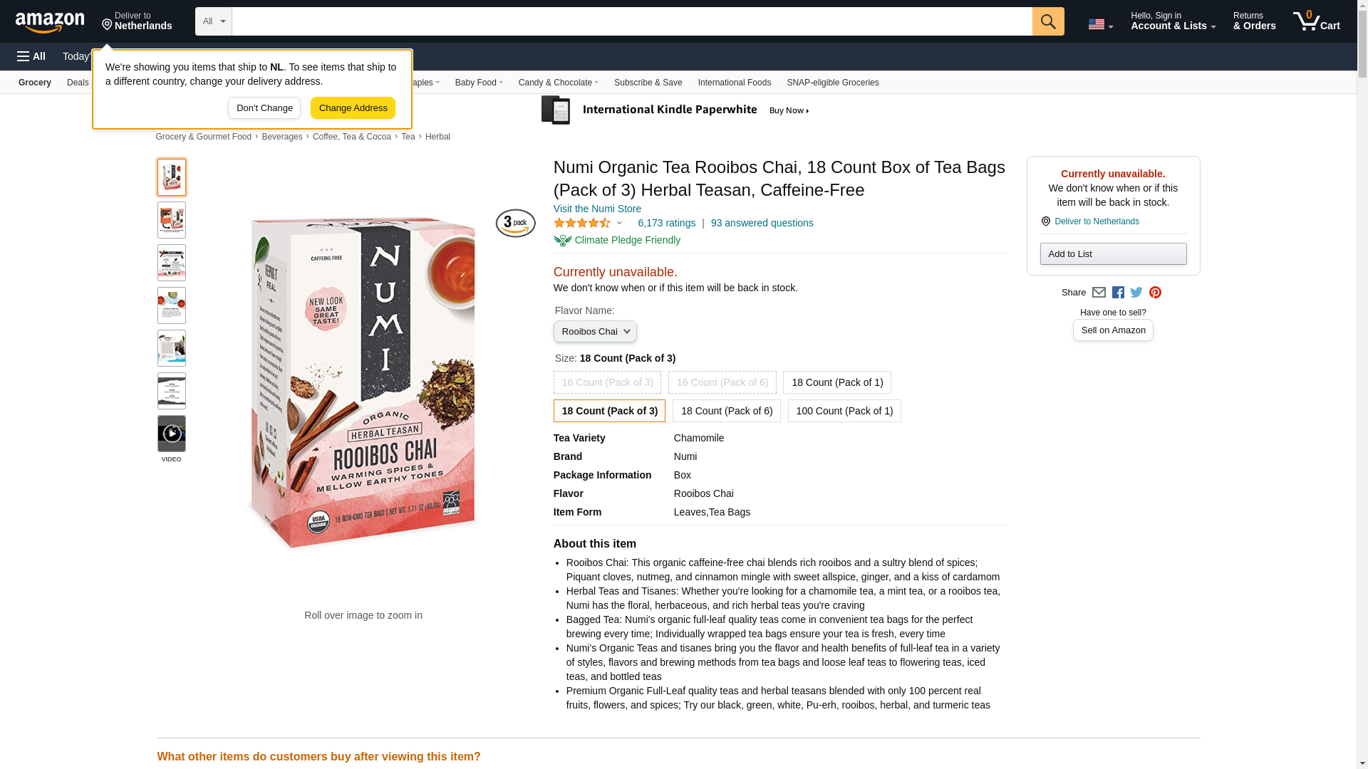 Numi Organic Tea Rooibos Chai, 18 Count Box of Tea Bags (Pack of 3) Herbal Teasan, Caffeine-Free