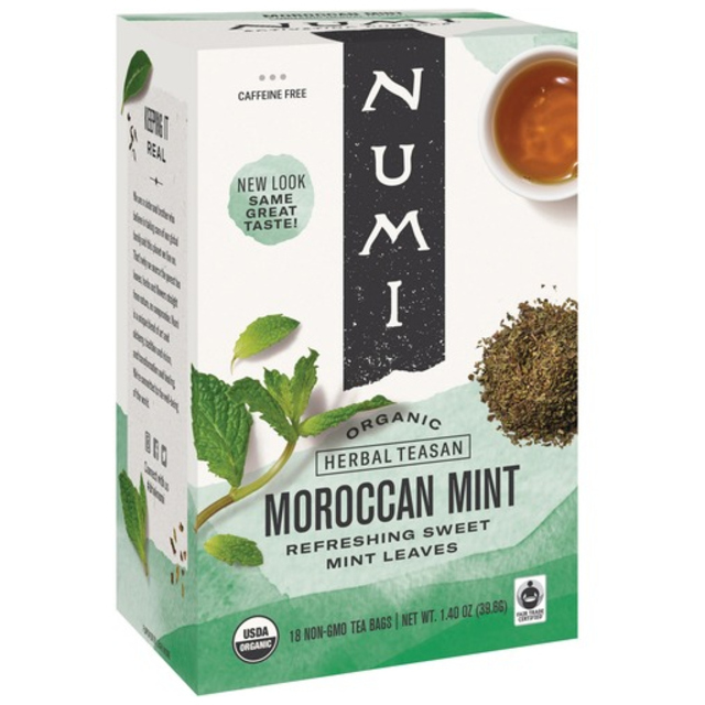 These organic, fair trade, all natural teas use premium ingredients for purity of taste. Made from full-leaf tea, with real fruit, herbs, flowers and spices. Sensual soothing flavors. Hand-crafted, sourced from sustainable gardens. Beverage Type: Tea; Flavor: Moroccan Mint; Packing Type: Box. Part Numbers:NUM-10104 NUMI ORGANIC TEAS AND TEASANS, 1.4 OZ, MOROCCAN MINT, 18BOX UPC: 680692101041