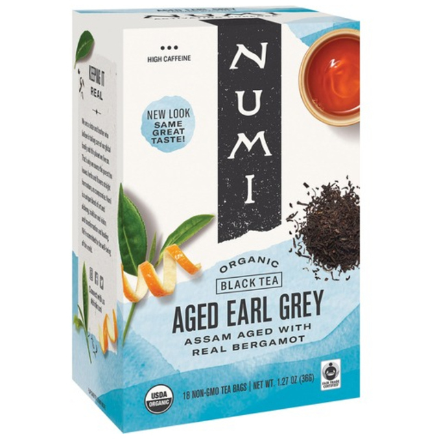 Numi Organic Tea Aged Earl Grey, 18 Count Box of Tea Bags, Black Tea (Packaging May Vary)