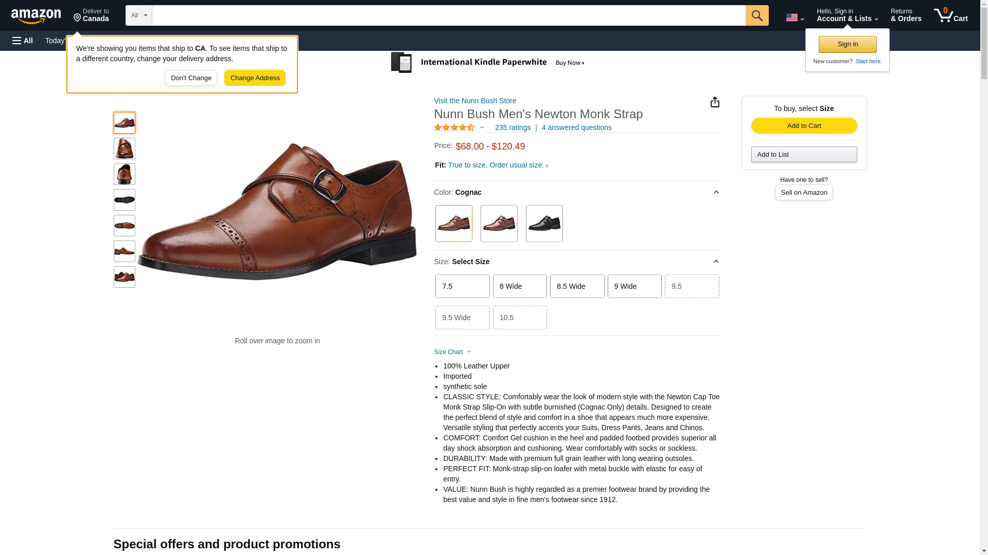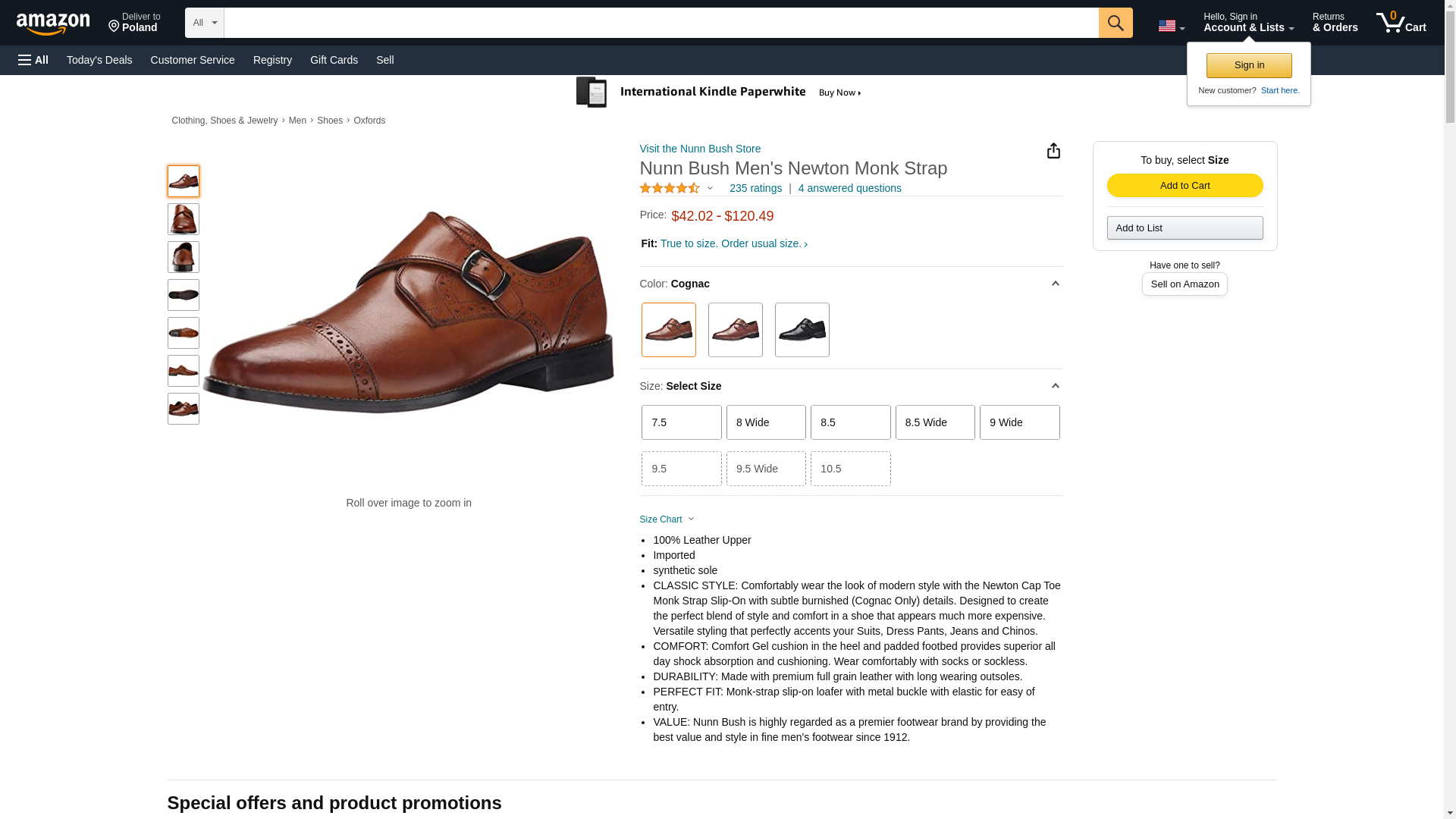"Nunn Bush Men's Newton Monk Strap Oxford, Cognac, 7.5 M US"