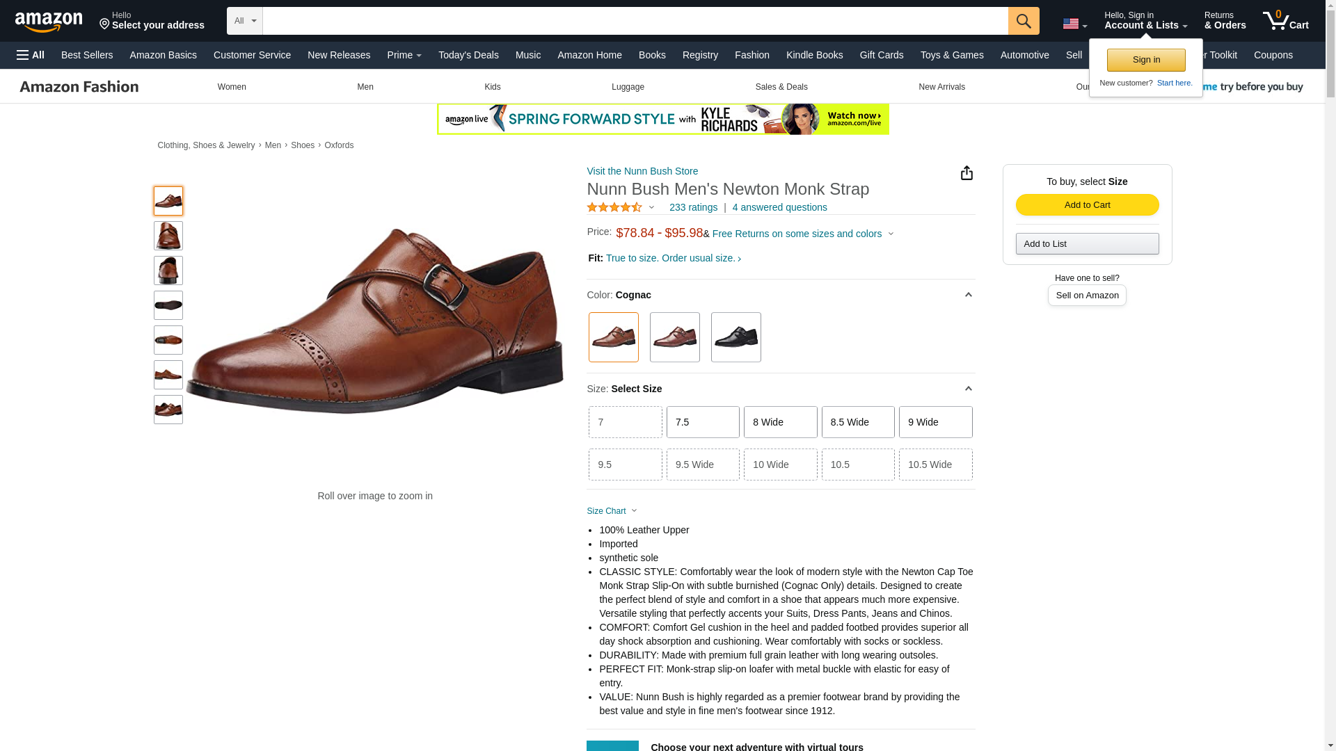 "Nunn Bush Men's Newton Monk Strap Oxford, Cognac, 9 W US"