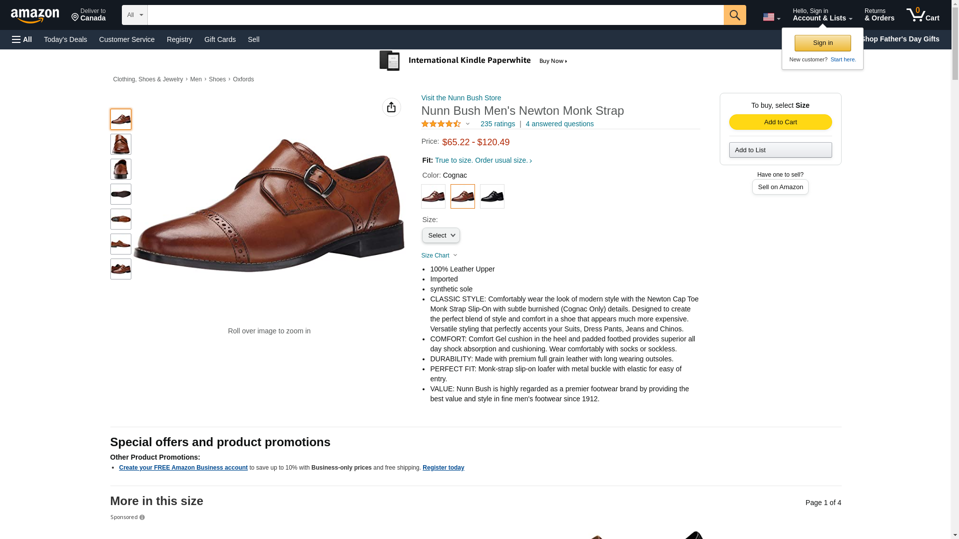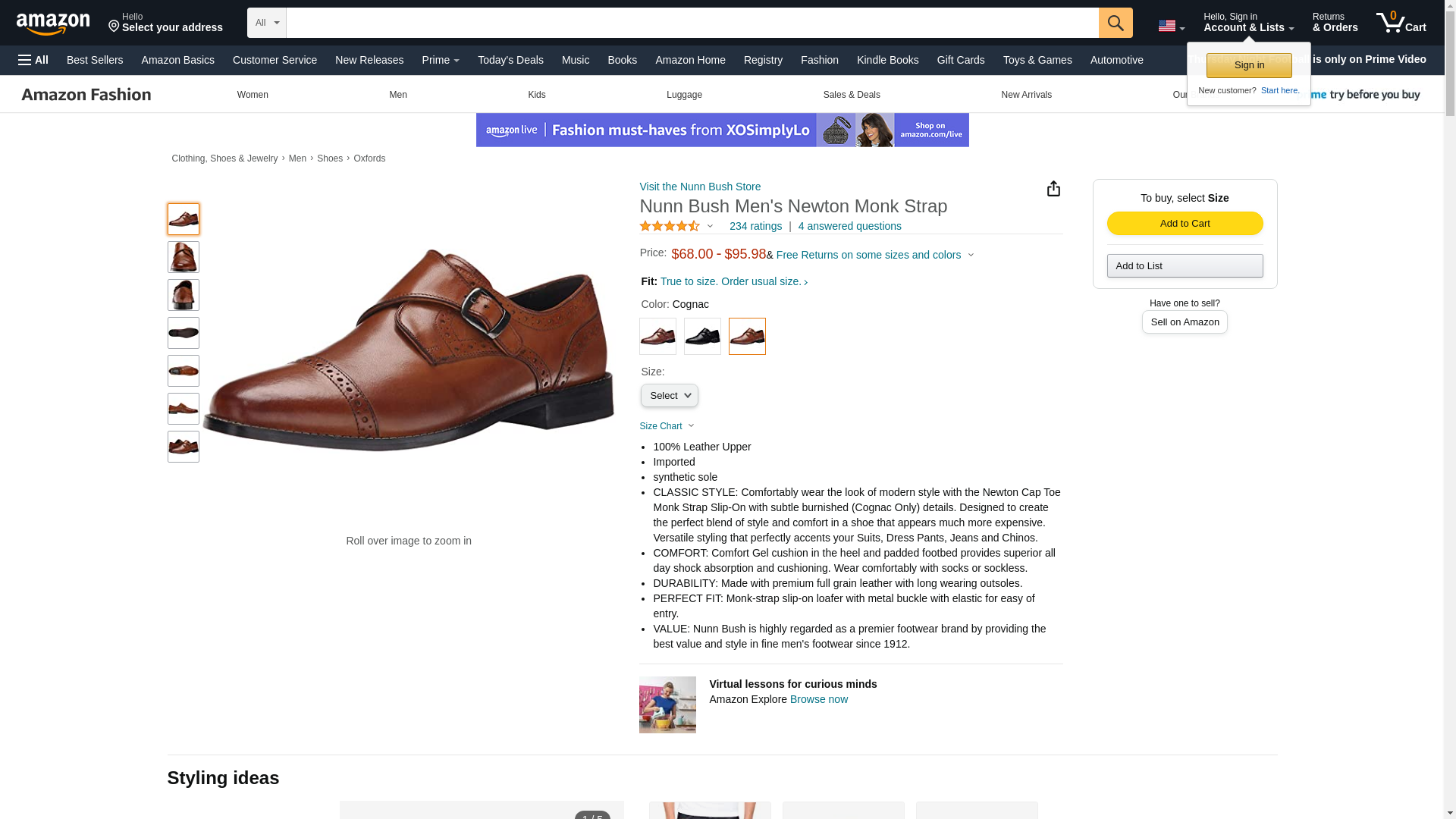 "Nunn Bush Men's Newton Monk Strap Oxford, Cognac, 11.5 M US"