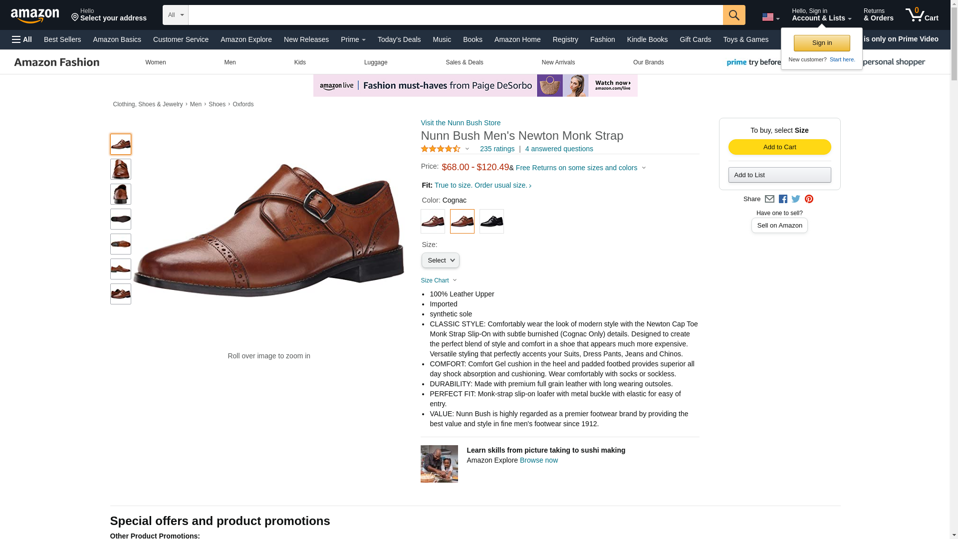 "Nunn Bush Men's Newton Monk Strap Oxford, Cognac, 7 M US"