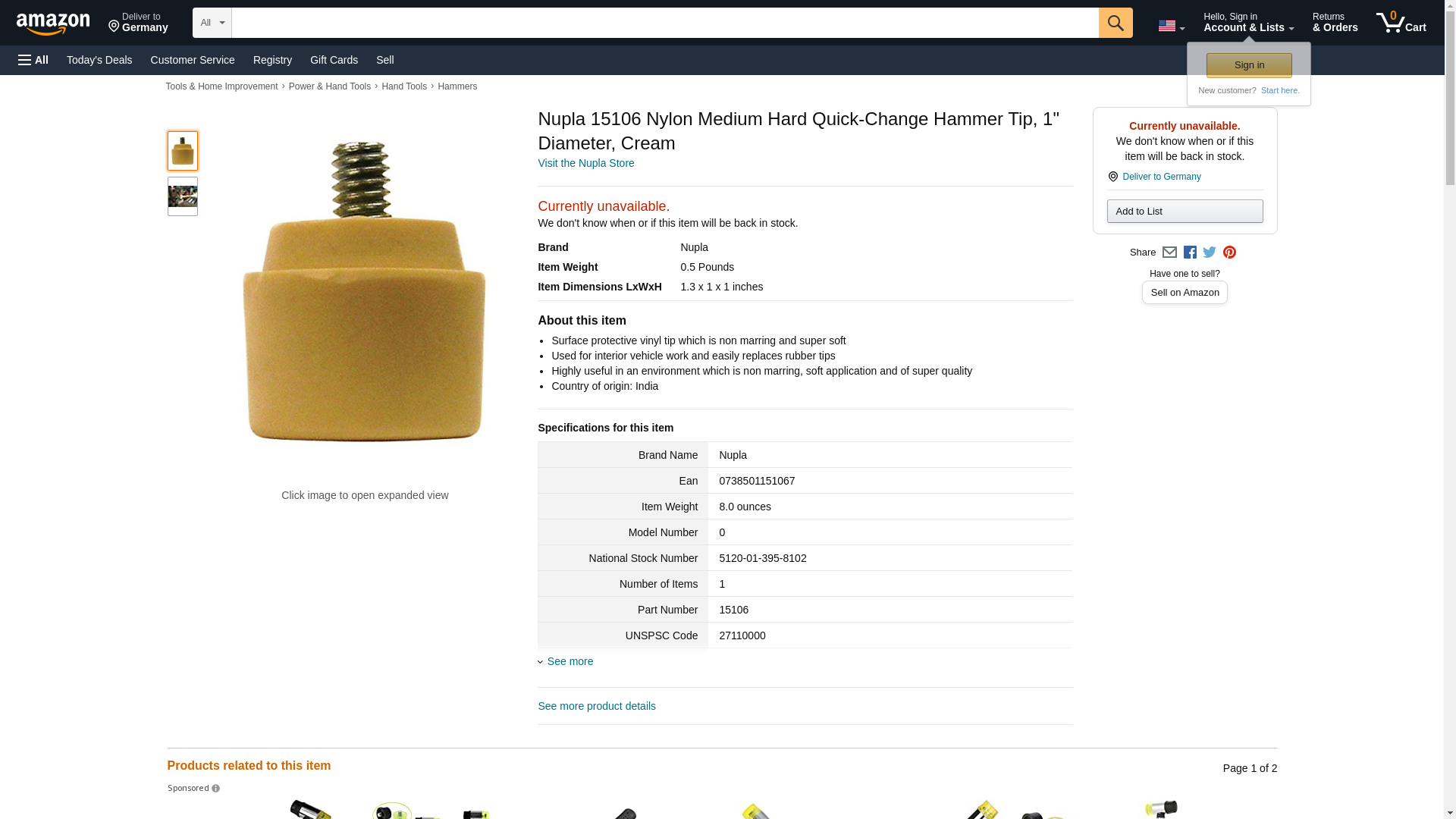 Nupla 15106 Nylon Medium Hard Quick-Change Hammer Tip, 1" Diameter, Cream