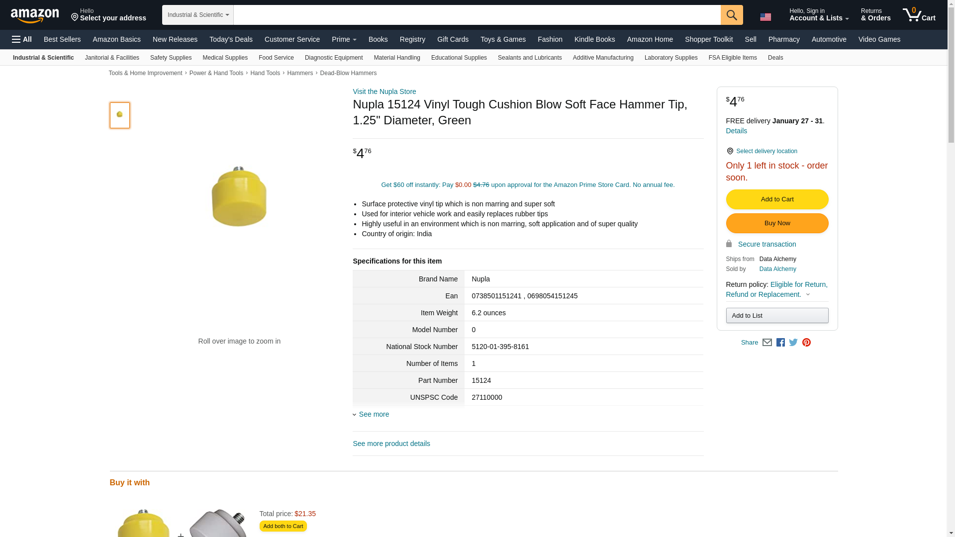| Feature | Price For: Each Color: Green Tip Material: Vinyl Hardness: Tough Fits Hammers: 6XFW7 Tip Dia. (In.): 1-1/8 Thread Size (In.): Nominal 1/4 Item: Replacement Hammer Tip Country of Origin (subject to change): United States |