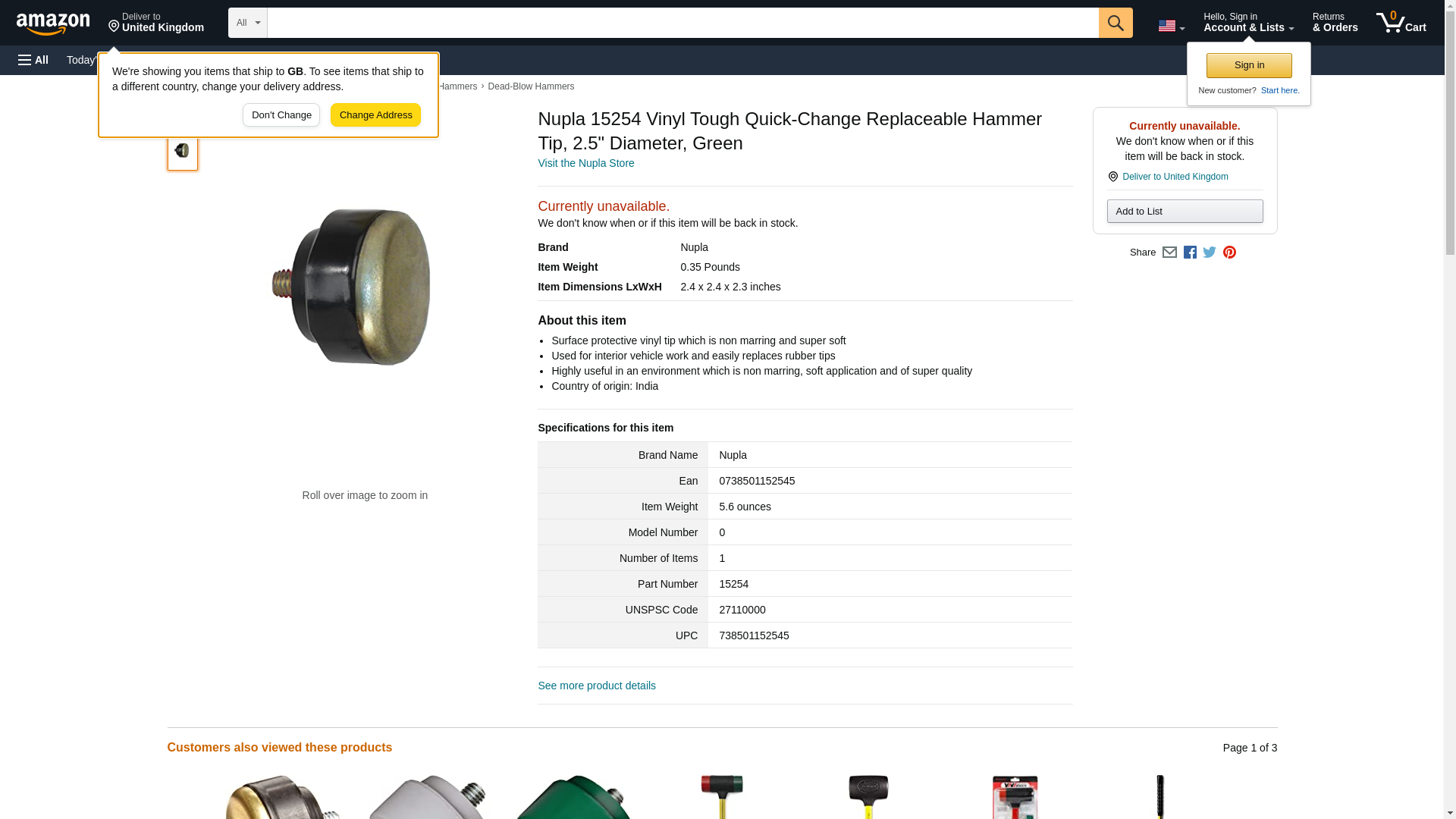 Nupla 15254 Vinyl Tough Quick-Change Replaceable Hammer Tip, 2.5" Diameter, Green