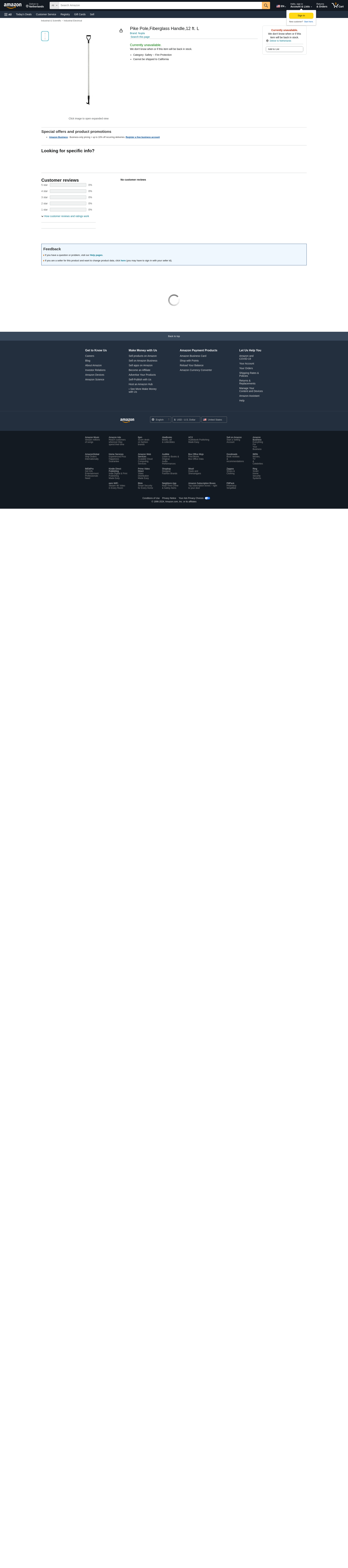 Pike Pole, Pike Head, Handle Material Fiberglass, Handle Length 12 ft, Head Material Steel, Handle Design Butt