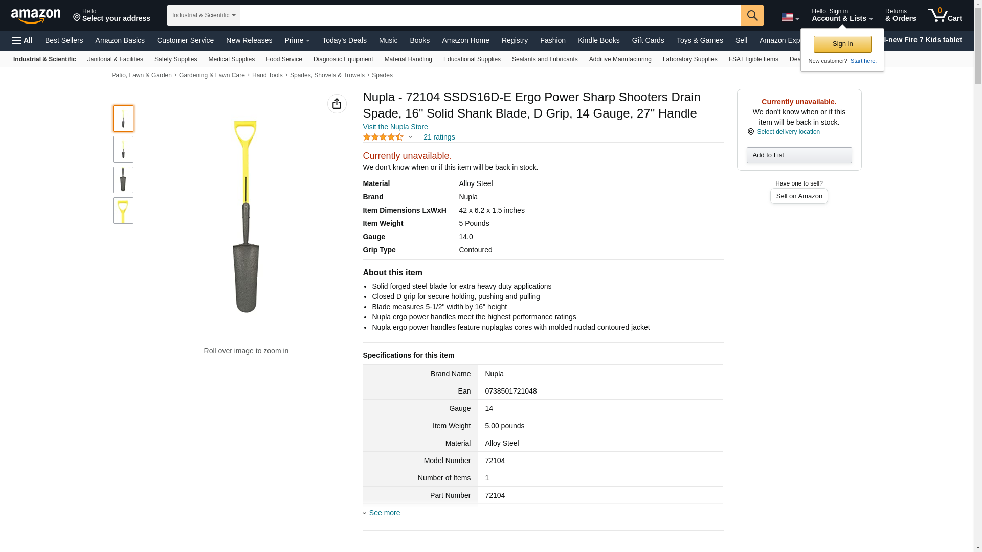 Nupla - 72104 SSDS16D-E Ergo Power Sharp Shooters Drain Spade, 16" Solid Shank Blade, D Grip, 14 Gauge, 27" Handle