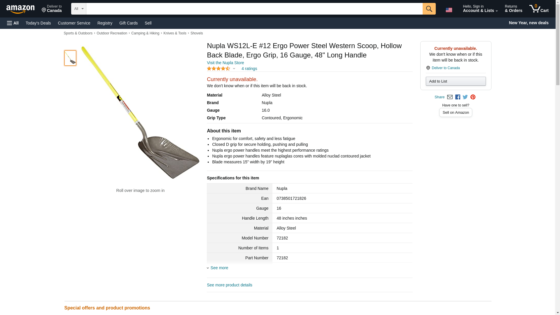 Nupla WS12L-E #12 Ergo Power Steel Western Scoop, Hollow Back Blade, Ergo Grip, 16 Gauge, 48" Long Handle