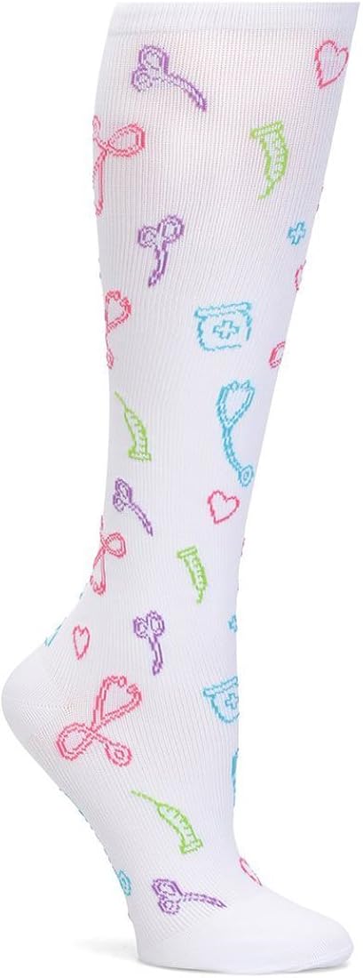 Nurse Mates 12 - 14 mmHg Graduated Support Compression with superior fit. Comfortable welt top band. Helps to increase circulation and prevent swelling. Standard sock size, fits most.