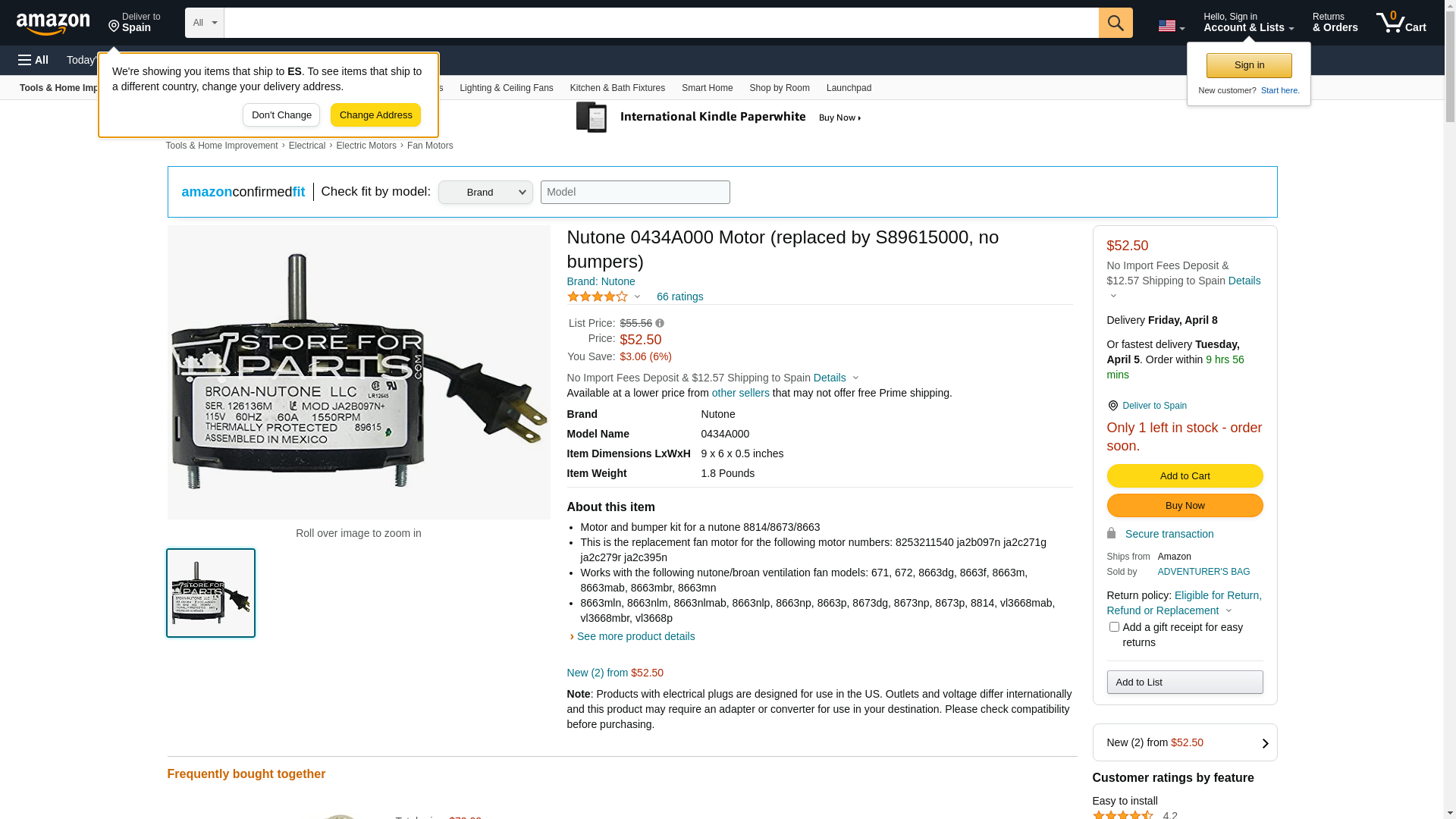 Nutone 0434A000 Motor (replaced by S89615000, no bumpers)