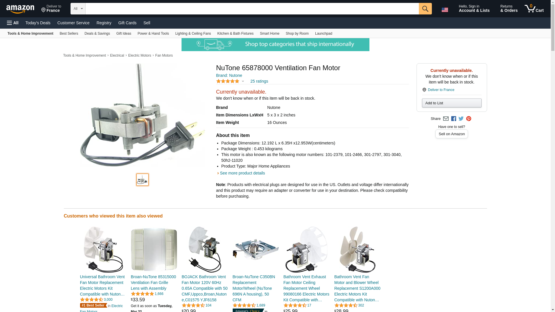 NuTone 65878000 Ventilation Fan Motor