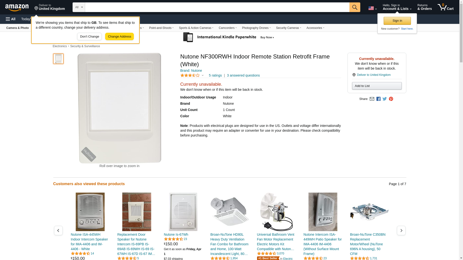 NuTone Intercom Systems NF300RWH Room Station Rretrofit Frame White