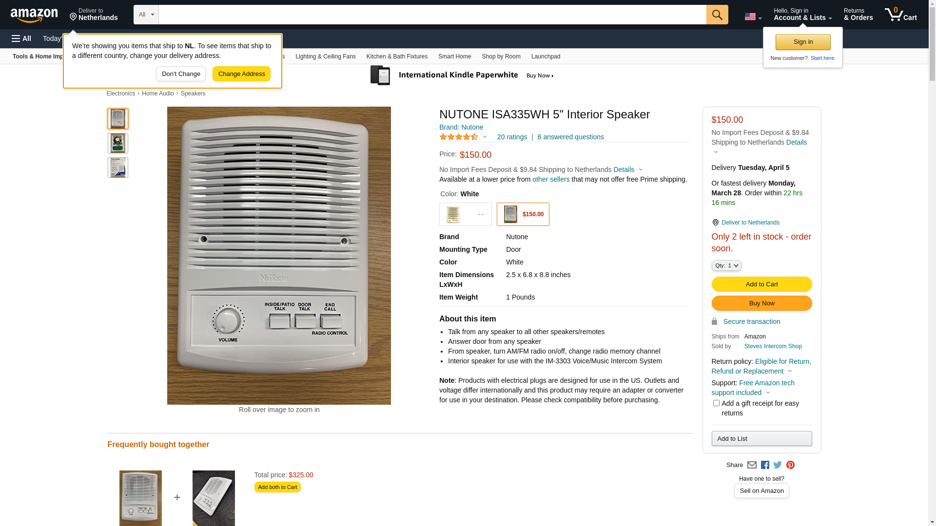 NUTONE ISA335WH 5" Interior Speaker