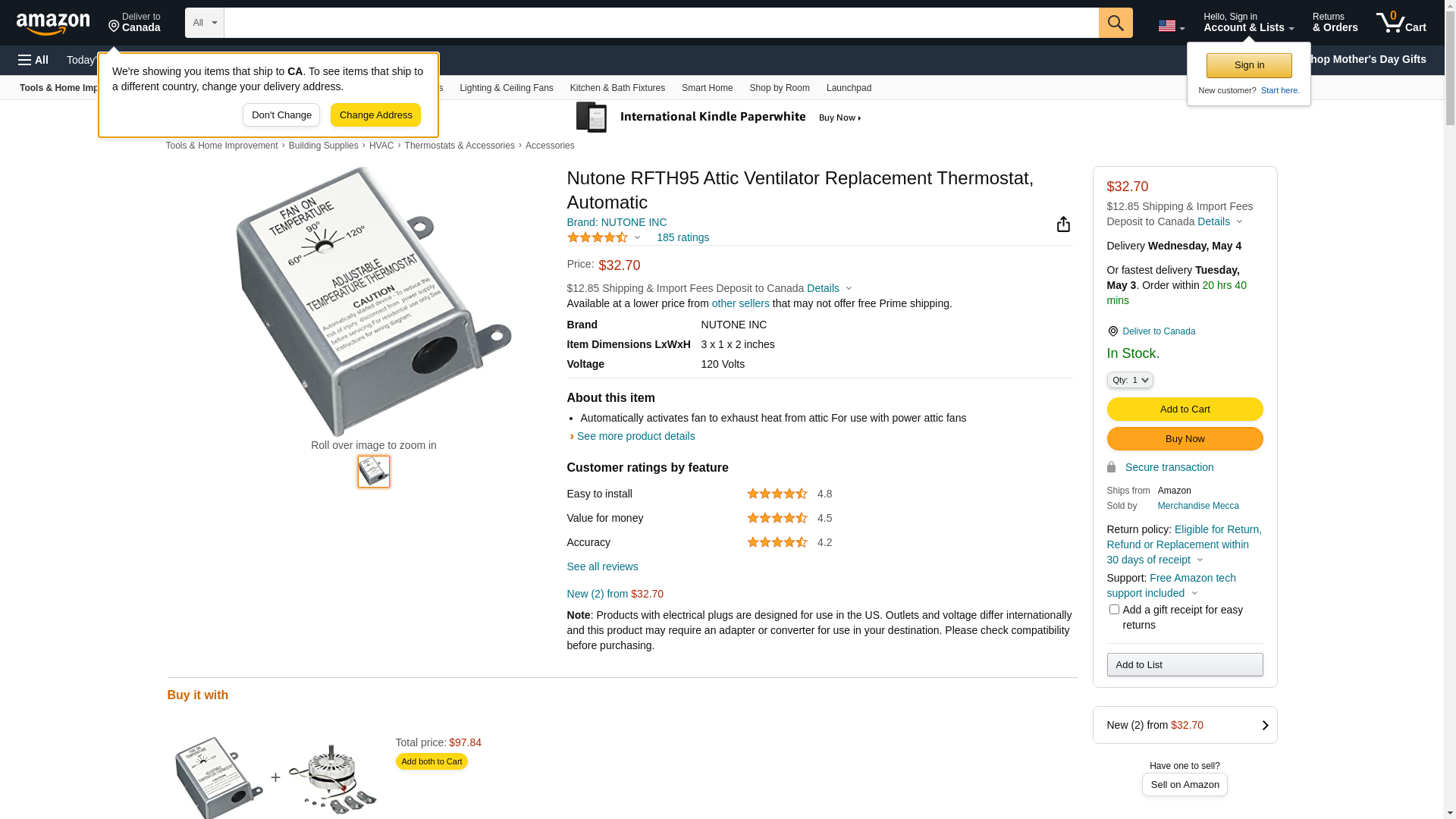 ![]() gordonelectricsupply.com | RFTH95 | 1 | Broan-Nutone orders over $375 Usually Ship NextBusiness Day, otherwise 5-7 Days | 1 | 1 @ $18.89 |