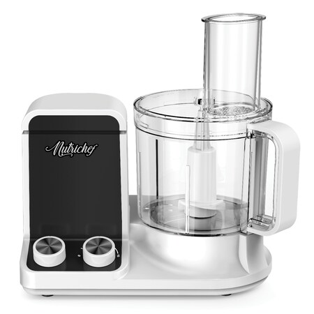 - 6 ATTACHMENT BLADE: The 12 cup food processor set includes slicer/shredder & masher blade disc, chopper, dough kneading, & emulsifying blades, & citrus juicer to easily mash nuts, shred vegetable/fruit, chop meat, mix flour & more w/ just 1 machine