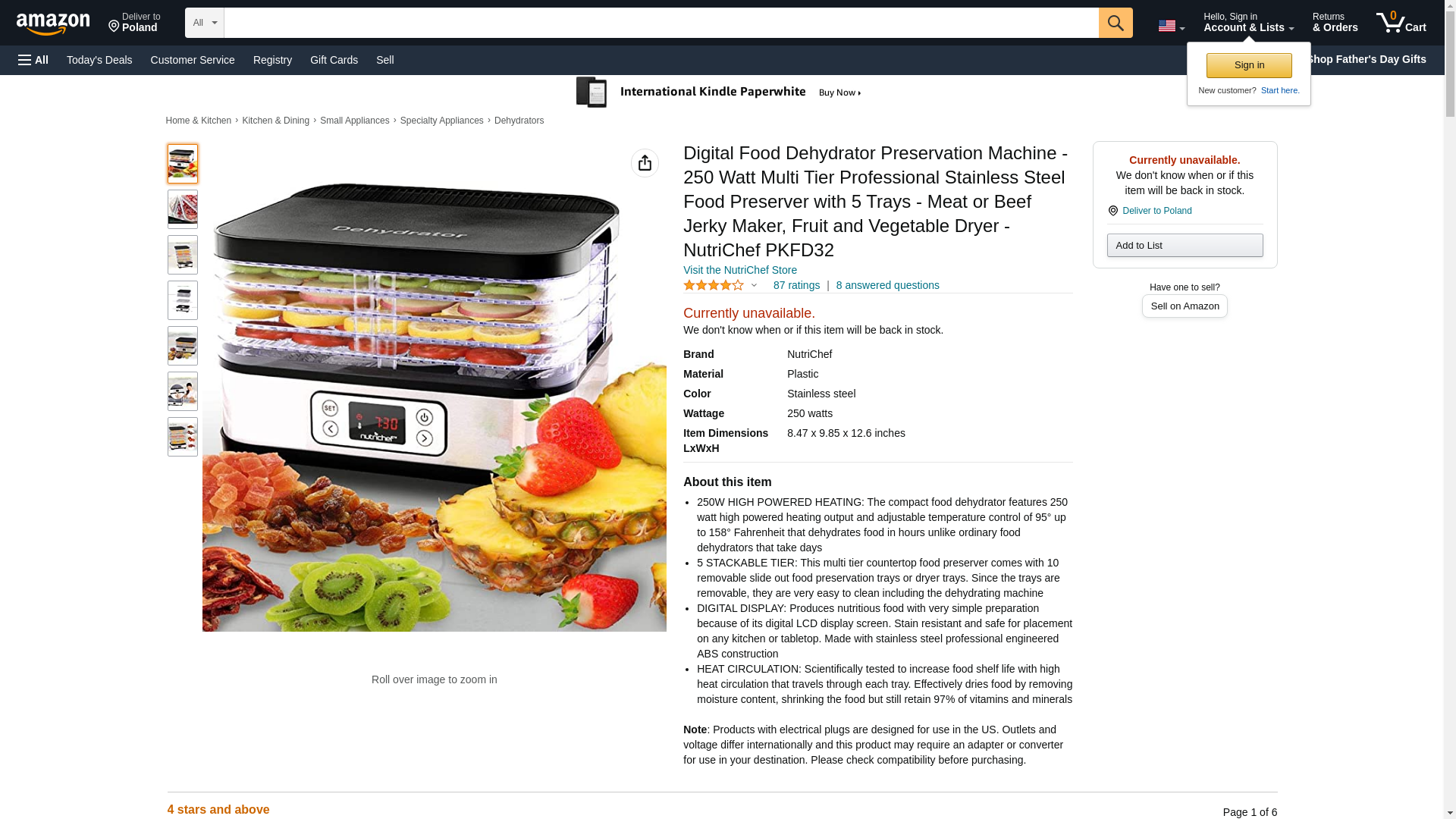 Digital Food Dehydrator Preservation Machine - 250 Watt Multi Tier Professional Stainless Steel Food Preserver with 5 Trays - Meat or Beef Jerky Maker, Fruit and Vegetable Dryer - NutriChef PKFD32