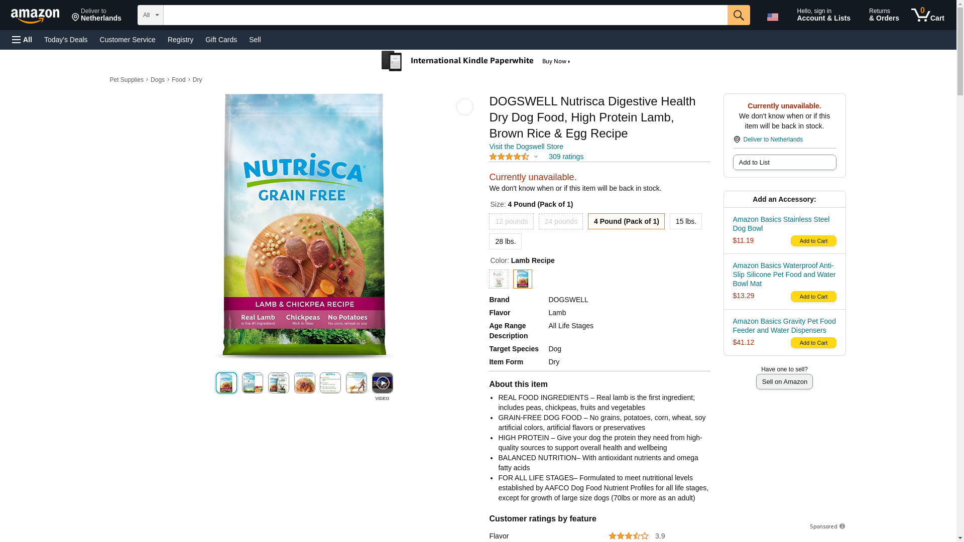 Dogswell NUTRISCA Grain Free Dry Dog Food, Lamb & Chickpea Recipe, 4 lbs.