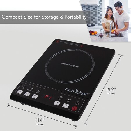 NutriChef Countertop Burner, Infrared Cooktop, Ceramic Cookware, Electric Stovetop, Black Tempered Glass, LCD Display, Keep Warm, 1200W, 120V (PKST14)